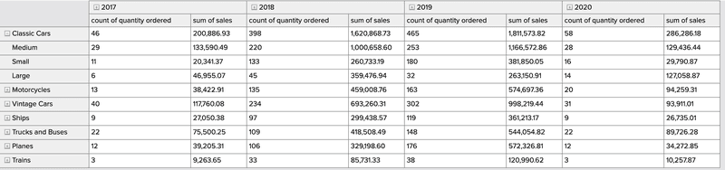 That data can easily be converted into a pivot table or any out-of-the-box visualization methods, such as Treemaps, Charts, and KPIs.